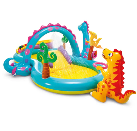 Qué niño puede resistirse a una divertida piscina con tobogán y juegos? Ahora puedes hacer realidad el sueño de tus hijos montando este centro de juegos inflable de dinosaurios en tu propio jardín, terraza o patio.